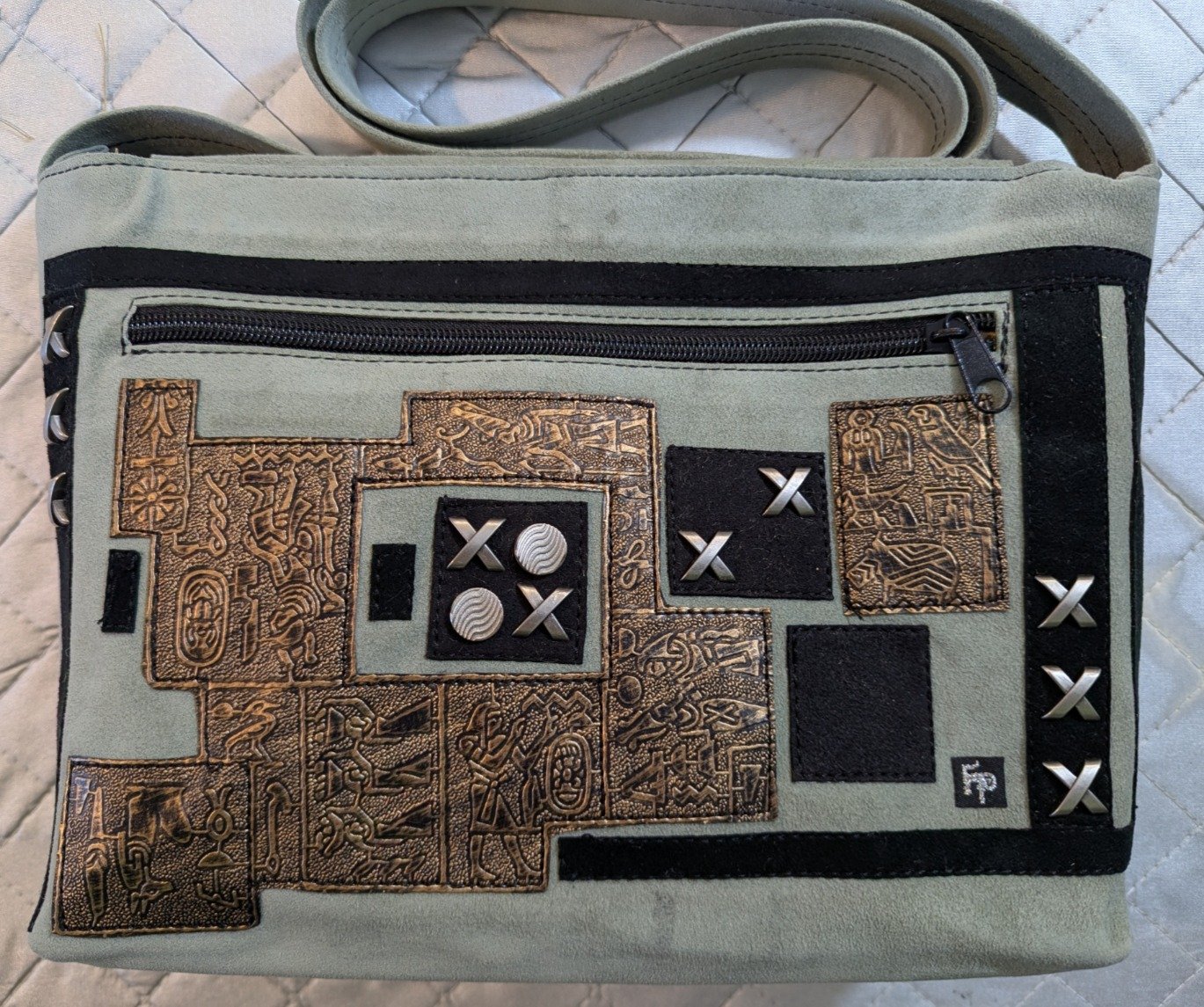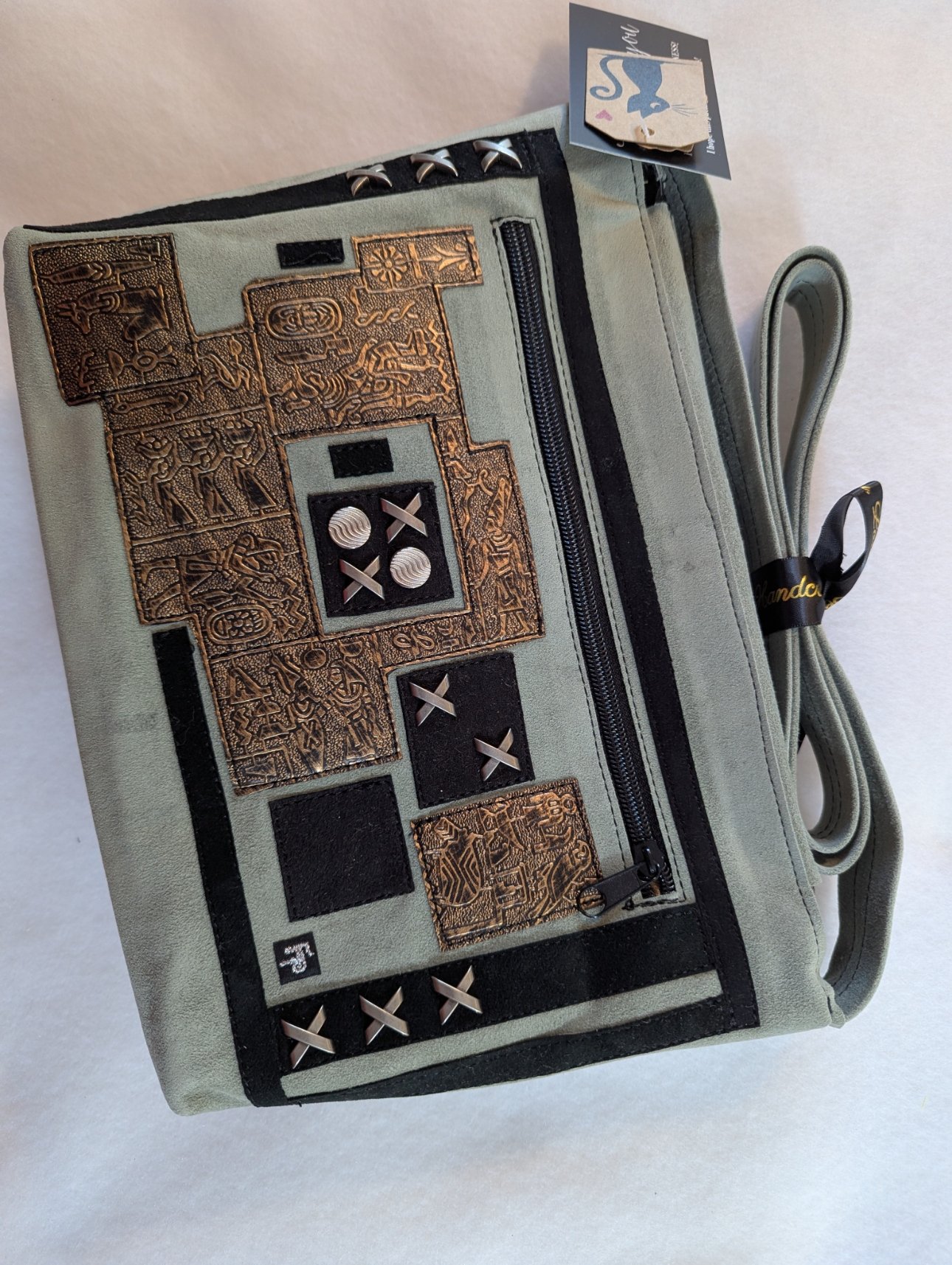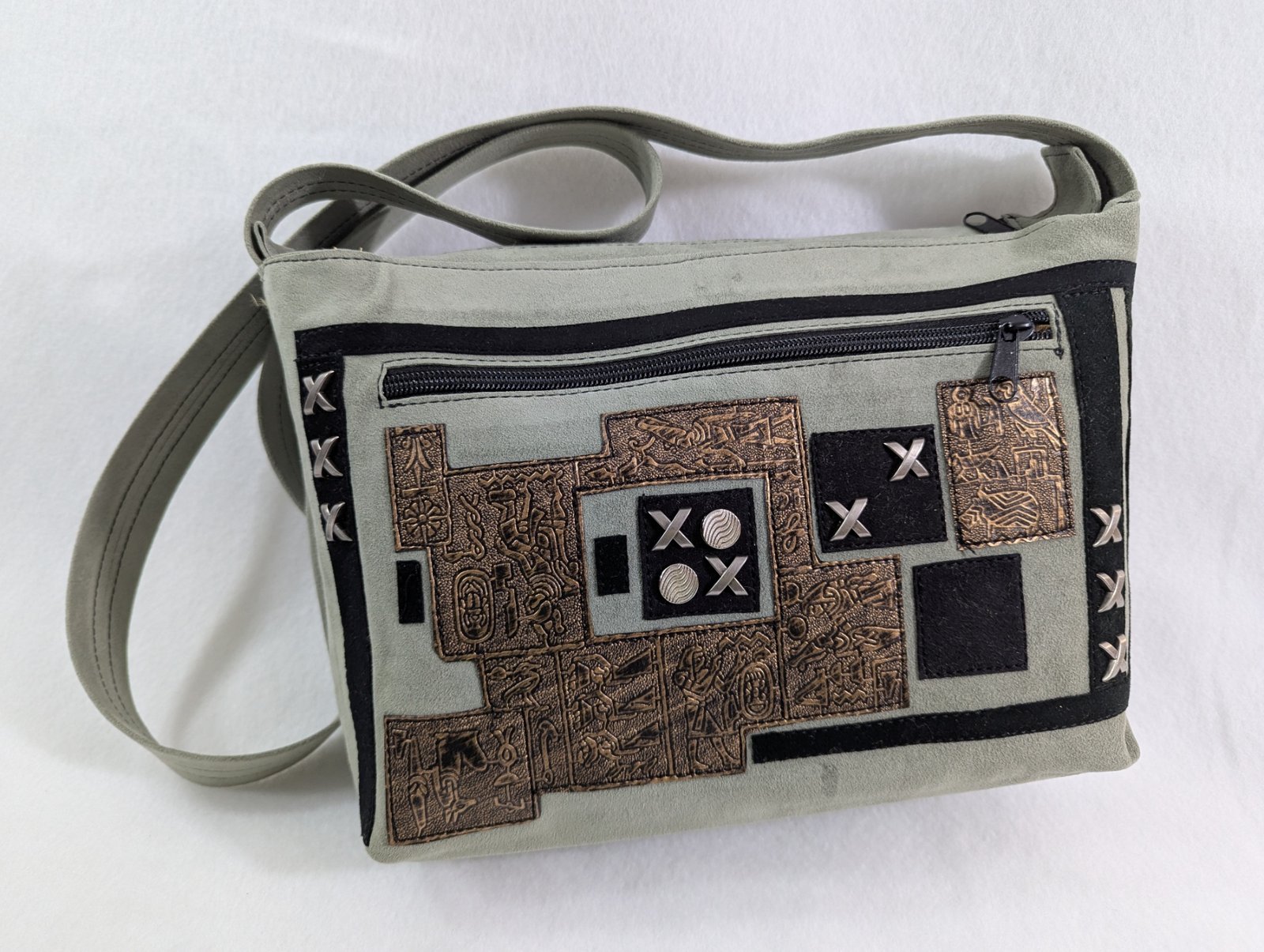 Handmade Crossbody Bag, One of a Kind Wearable Art Purse, Ancient Egypt Inspired Ultrasuede Handbag with Zipper Pockets