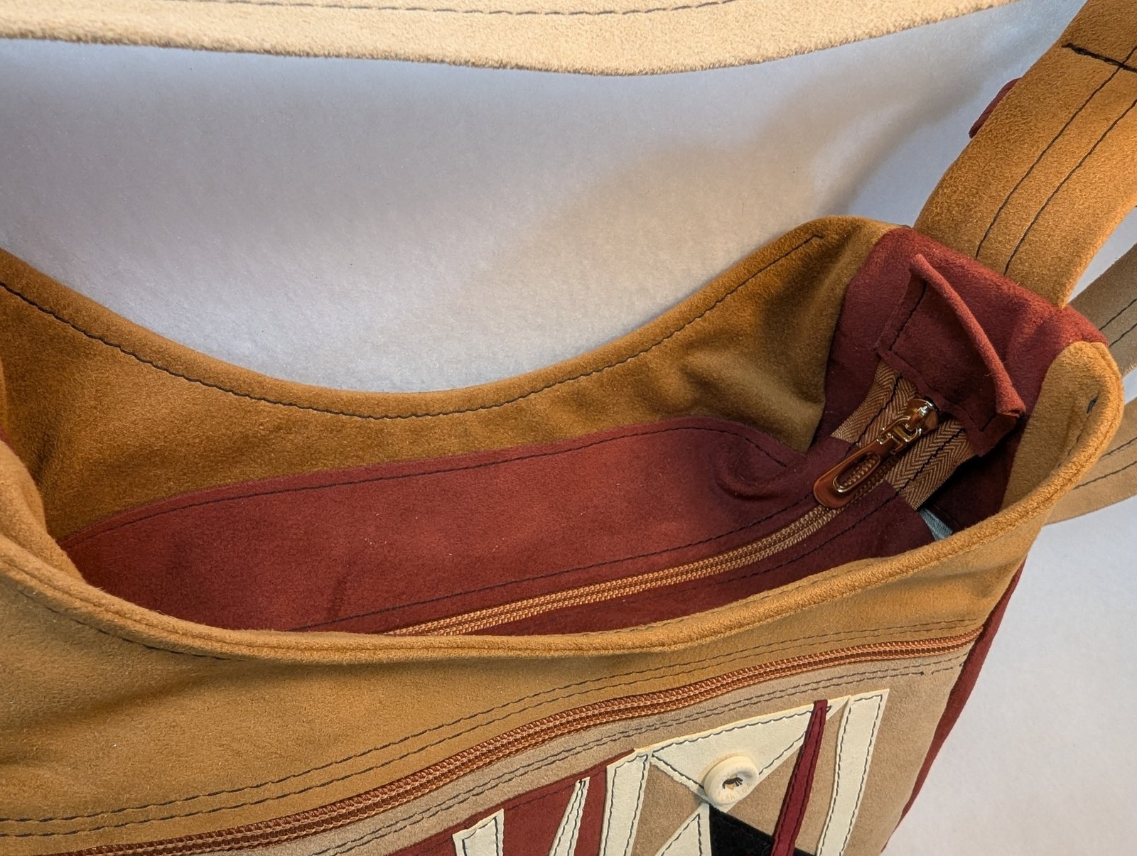 Inspired by warmth, movement, and the shifting tones of the natural world, the Ember Trail Organizer Bag brings together layered appliqué detail, rich earth-toned colour, and thoughtful construction in a piece that feels both expressive and highly usable.